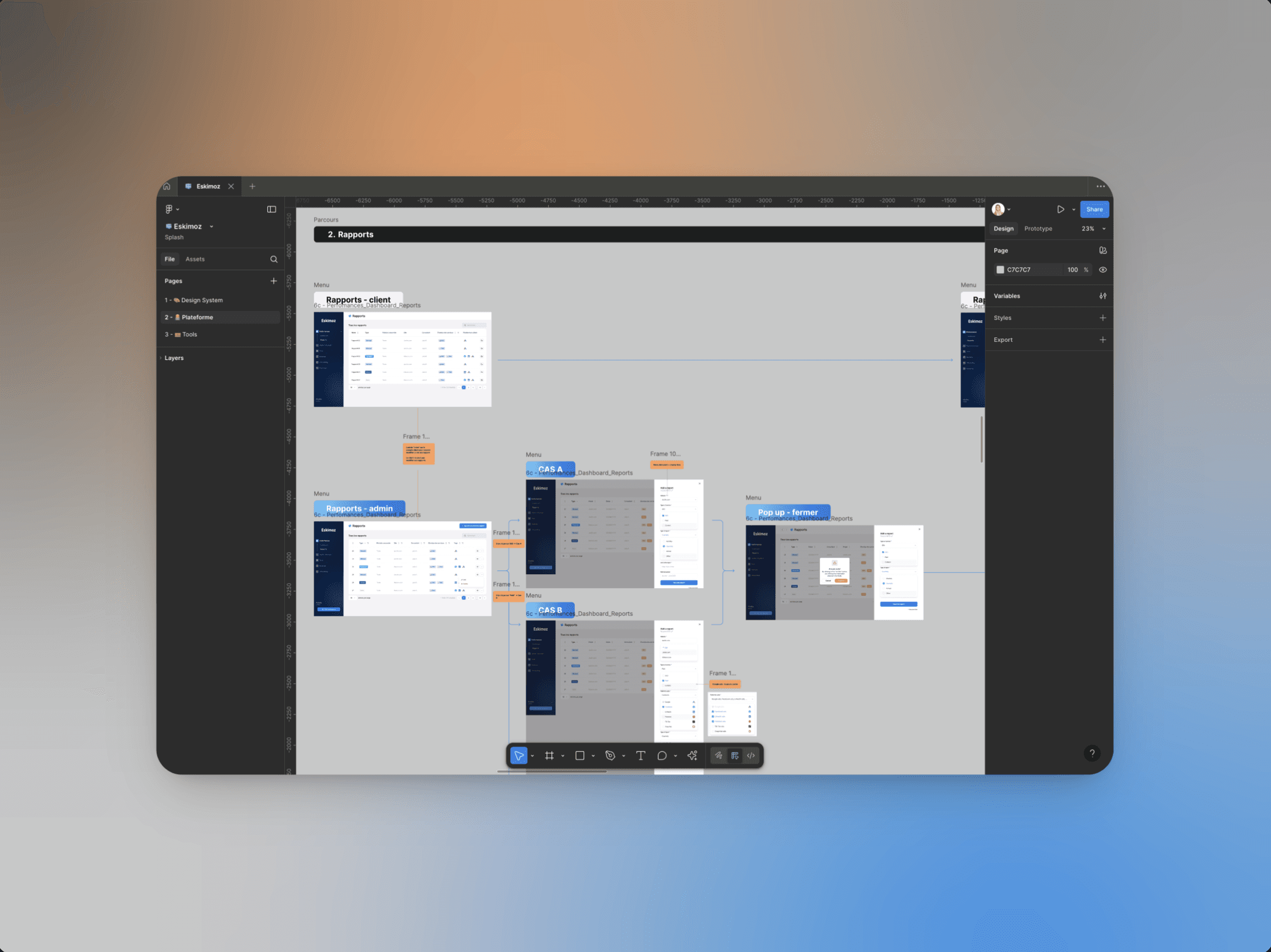 UI/UX Design: Conception d'une interface visuellement captivante qui incarne la vision artistique d'Eskimoz tout en offrant aux utilisateurs une navigation facile pour explorer leurs données, les outils, et toutes les informations dont ils ont besoins.